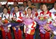 Gymnasts from China celebrate their gold medal win in the women's team final at the 39th Artistic Gymnastics World Championships in Aarhus, Denmark, October 18, 2006. Team China won the gold while the U.S. won the silver and Russia the bronze. [Reuters]