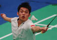 Xie Xingfang of Chinese badminton team returns a shot during men's single match second round against a player of Malaysia at the Germany Open badminton Mar,1st,2007.Xie won the match 2-0 to advance.[Xinhua]