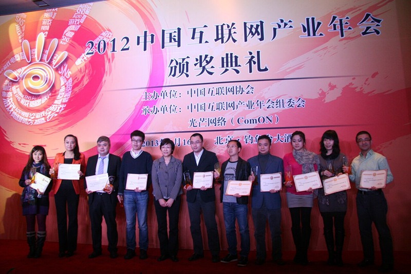 1月16日,2012中國互聯(lián)網(wǎng)產(chǎn)業(yè)年會在北京釣魚臺國賓館隆重召開。本次年會盤點了2012年中國互聯(lián)網(wǎng)與移動互聯(lián)網(wǎng)產(chǎn)業(yè)發(fā)展成果,圍繞“醞釀2013:在變革中演繹精彩”主題,針對移動互聯(lián)網(wǎng)、電子商務、網(wǎng)絡安全、大數(shù)據(jù)和O2O等熱點領域展開探討,探尋2013年發(fā)展方向。作為中國互聯(lián)網(wǎng)年度思想輸出陣地,會上重磅發(fā)布了《影響2012年中國互聯(lián)網(wǎng)發(fā)展的十件大事》、《2012年中國互聯(lián)網(wǎng)產(chǎn)業(yè)發(fā)展報告》和《2013中國移動互聯(lián)網(wǎng)發(fā)展趨勢報告》等多項報告。當晚,2012年度中國最具權威和影響力的“金手掌”大獎——“價值”與“創(chuàng)新”兩大綜合獎項正式揭曉,“彩票365”榮獲“2012中國互聯(lián)網(wǎng)十大服務創(chuàng)新”獎。