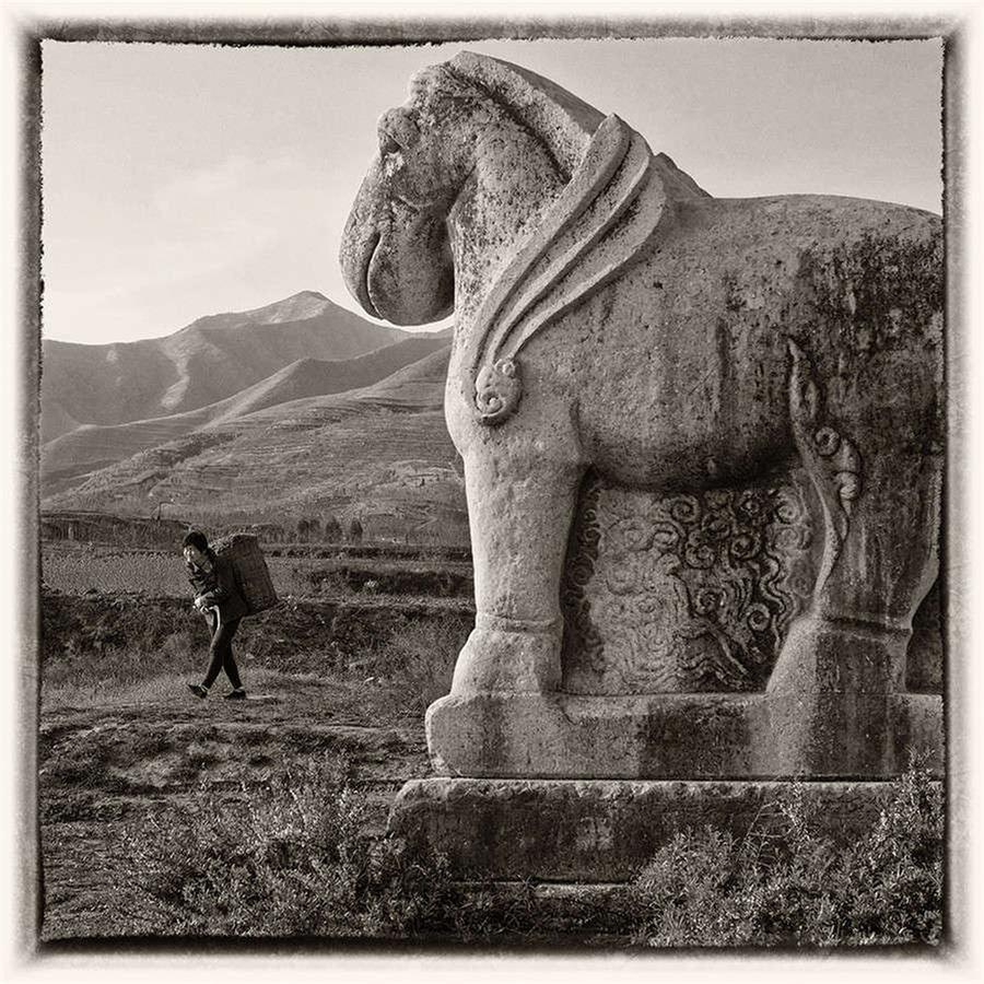 A farmer walks past the Zhenling Mausoleum, the tomb of Emperor Xuanzong of the Tang Dynasty. [Photo by Deng Hai/cpanet.org.cn] |