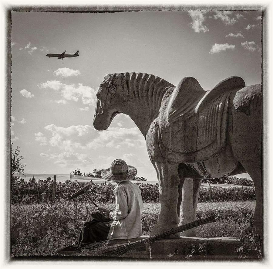 A farmer sits near a stone caring of the Shunling Mausoleum, the tomb of Empress Wu Zetian's mother of the Tang Dynasty. [Photo by Deng Hai/cpanet.org.cn] |