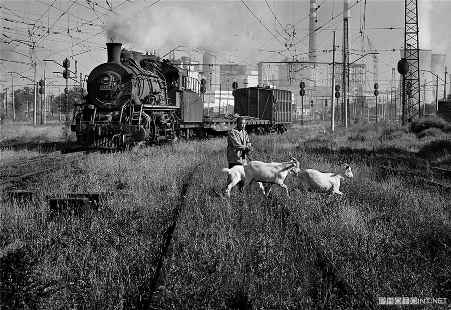 A sheepherder at the deserted switchyard of Haizhou open-pit in Fuxin city, Liaoning province, in 2003. Photo taken by Wang Yuwen. [Photo provided by cpanet.org.cn