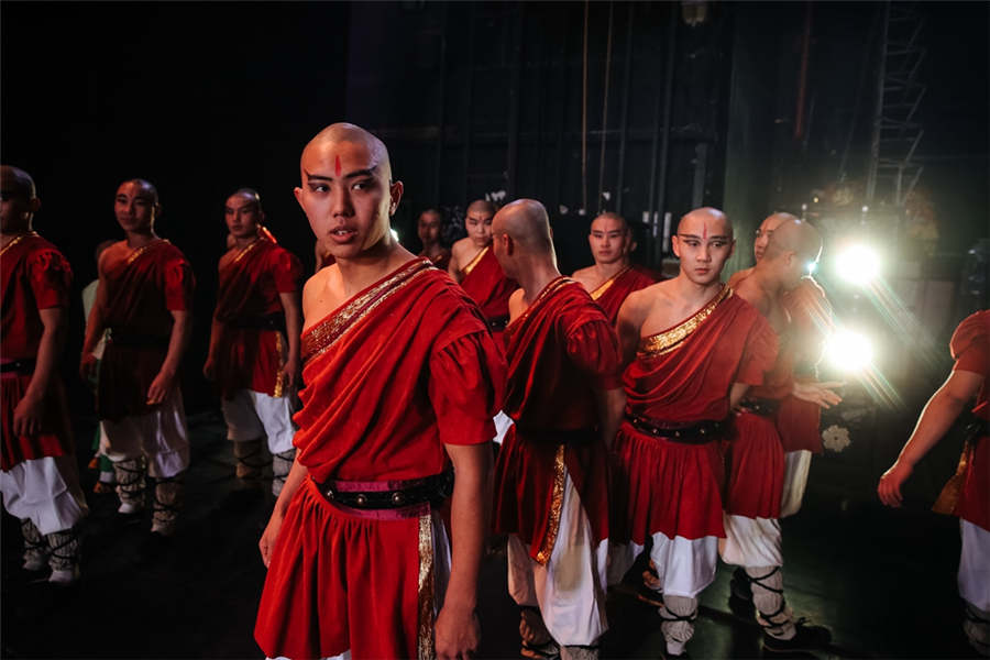 Martial artists warm up before The Legend of Kungfu at the Red Theater in Beijing on Feb 10, 2017. [Photo by Roman Pilipey/cpanet.org.cn]