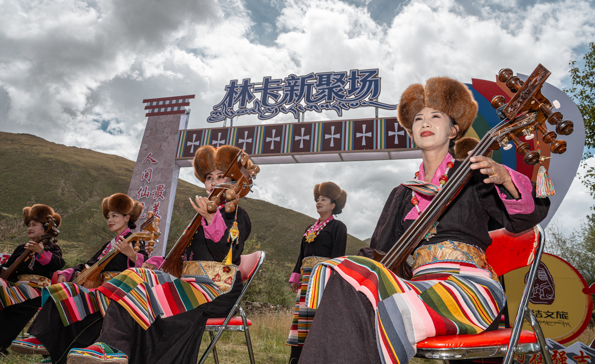 Actresses perform at a "Lingka" festival in Chonggyai county of Lhokha, Southwest China's Xizang autonomous region, on Sept 13, 2025. [Photo/Xinhua]
