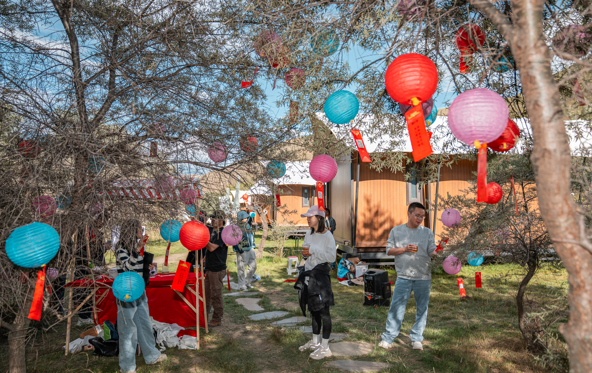Tourists guess lantern riddles at a "Lingka" festival in Chonggyai county of Lhokha, Southwest China's Xizang autonomous region, on Sept 13, 2025. [Photo/Xinhua]