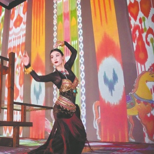 At a cultural exhibition in Hotan in the Xinjiang Uygur autonomous region in mid-August, audiences watched in silence as polychromatic projections of the region's vibrant Atlas silk, famed for its multicolored resist-dyeing patterns, illuminated a digital screen. On the stage, a boy pretended to be turning what looked like a wooden loom, modeled on the Han Dynasty (206 BC-AD 220) jacquard loom. As he turned the levers, on the screen before him, the classic "five stars rising in the East" pattern — an auspicious cultural symbol — slowly unfurled. The crowd erupted in applause.