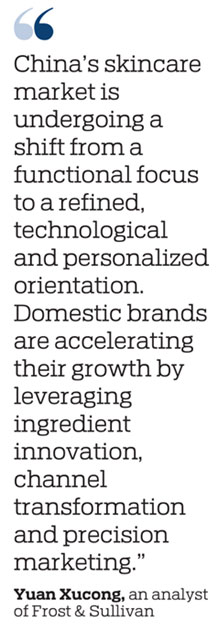 "China's skincare market is undergoing a shift from a functional focus to a refined, technological and personalized orientation. Domestic brands are accelerating their growth by leveraging ingredient innovation, channel transformation and precision marketing," said Yuan Xucong, an analyst of Frost & Sullivan.