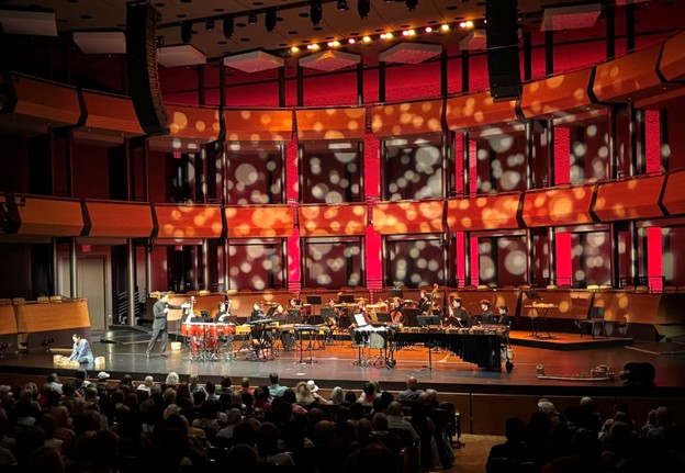 The concert opened with Guan Naizhong's percussion concerto The Age of the Dragon. Inspired by the dragon's powerful symbolism in Chinese culture, and by the rare alignment of the first year of the 21st century with the Year of the Dragon, an event that happens only once every three thousand years, the work unfolds in four movements: The Sun, The Moon, The Stars, and The Earth. For this performance, the first and last movements were presented: The Sun, symbolizing light, strength, and faith, and The Earth, celebrating human connection.