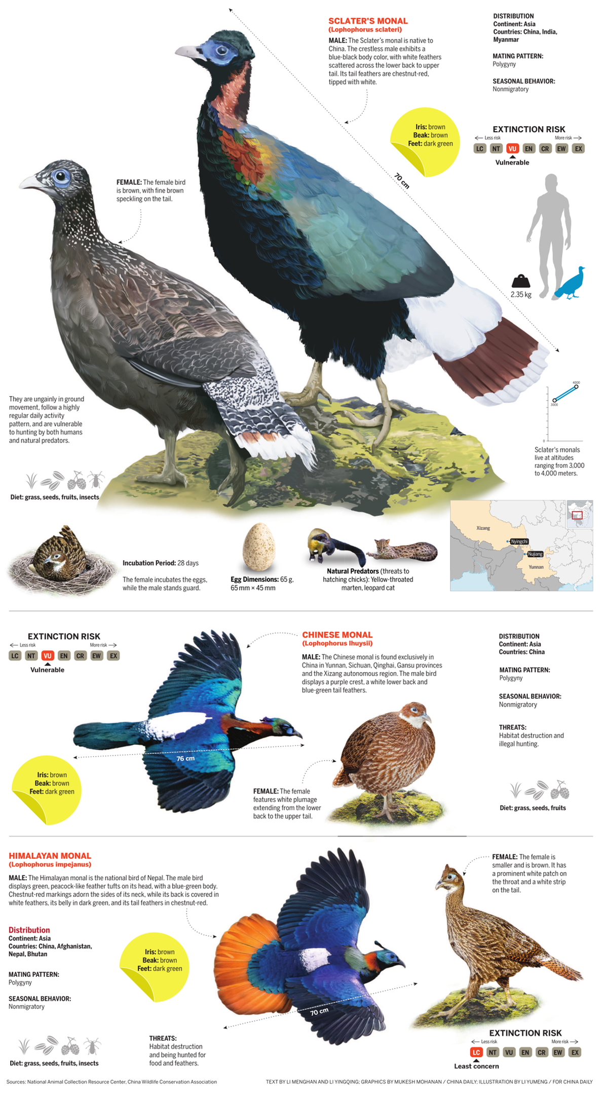 "For the timid Sclater's monal, we hope to take more photos of them. This way, we can learn about their habits and understand how they behave. But we always make sure not to disrupt their normal lives while doing our work," Wang said.