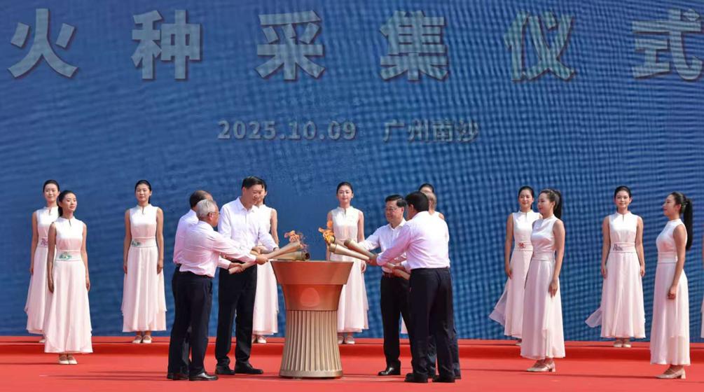 The torch-lighting ceremony for the 15th National Games, the 12th National Games for Persons with Disabilities, and the 9th National Special Olympic Games is hosted in Guangzhou's Nansha district on Thursday. [Photo by Parker Zheng / for chinadaily.com.cn]