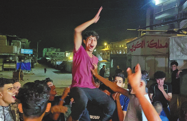 Palestinians celebrate in Khan Younis in the southern Gaza Strip on Thursday following news of a new Gaza ceasefire deal. [Photo/AFP]