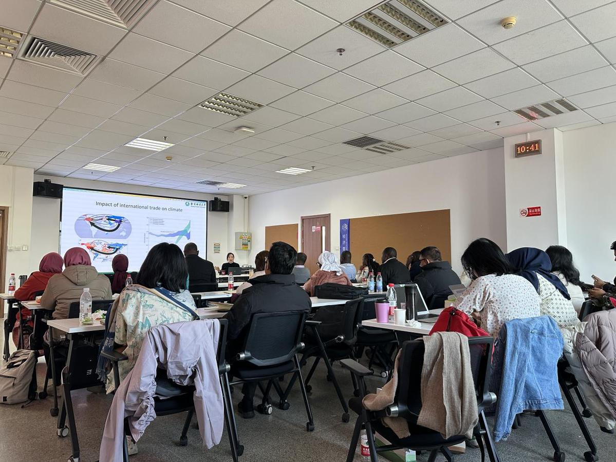 Participants are attending a lecture on forestry carbon sequestration management at Beijing Forestry University on Oct 27, 2025. [Photo by Dong Senhe/chinadaily.com.cn]