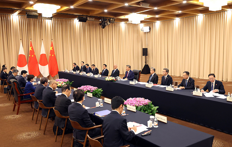 While meeting with Japanese Prime Minister Sanae Takaichi at her request on the sidelines of the 32nd APEC Economic Leaders' Meeting in the South Korean city of Gyeongju, Xi pointed out that as China and Japan are close neighbors, promoting the long-term, healthy and stable development of China-Japan relations meets the common expectations of both peoples and the international community.