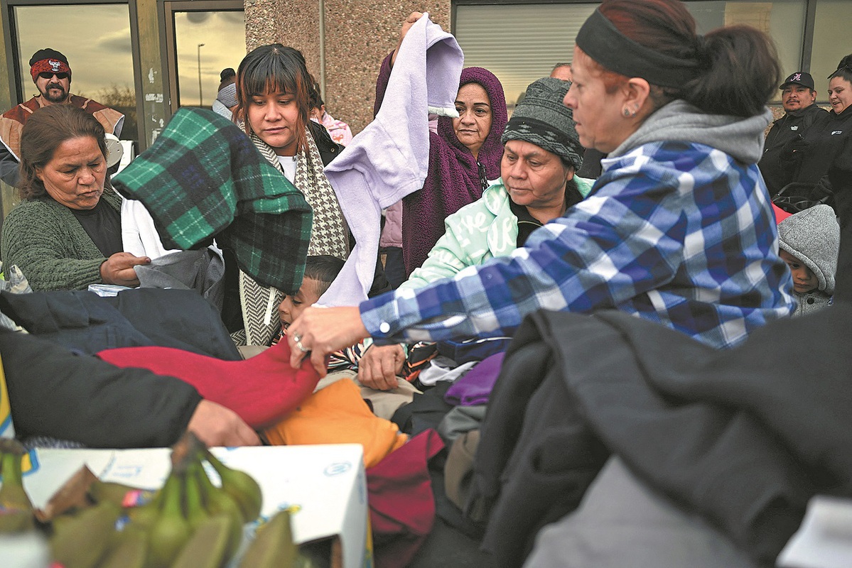 People inspect donated clothing outside Adams County Emergency Food Bank in Commerce City, Colorado, on Oct 31. MARK MAKELA/REUTERS