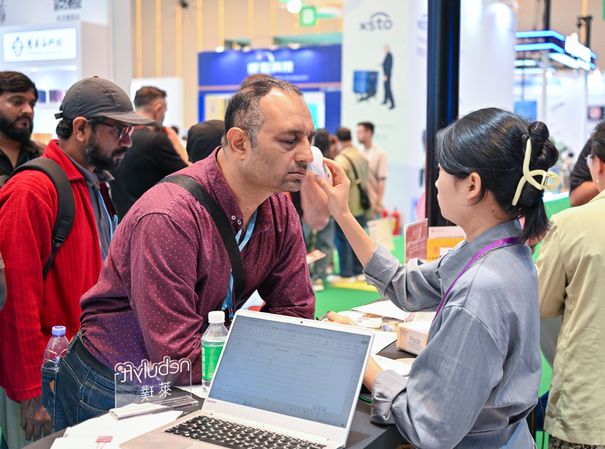A buyer experiences a beauty equipment during the 138th edition of the China Import and Export Fair in Guangzhou, South China's Guangdong province, Nov 3, 2025. [Photo/Xinhua]