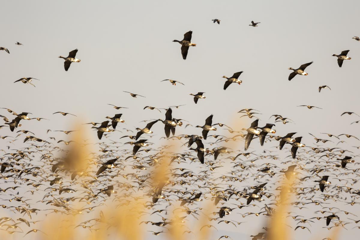 Over 10,000 wild geese gather at Jingxin Wetland in Jilin