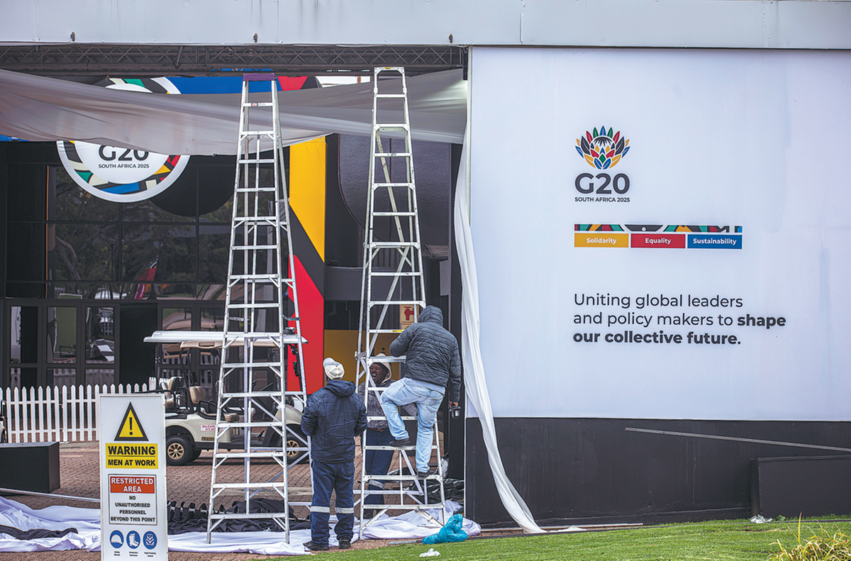 Workers give finishing touches to the plenary entrance as South Africa prepares to host the G20 Leaders' Summit on Monday in Johannesburg. PER-ANDERS PETTERSSON/GETTY IMAGES