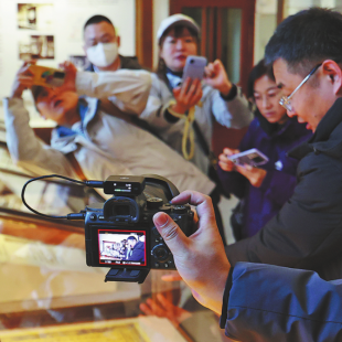 Visitors take photos on Friday of a replica of the edict that the Ming Dynasty (1368-1644) sent to the King of Ryukyu in 1629, which is on display at the Lushun Museum in Dalian, Liaoning province. Ryukyu was a tributary state of China during the Ming and Qing dynasties (1368-1911). XINHUA