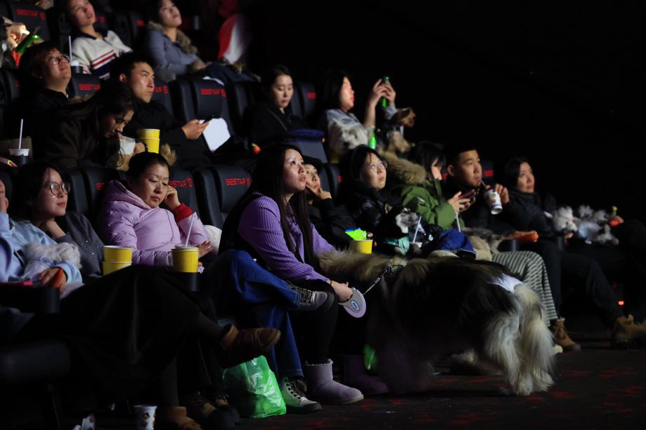 Citizens at a cinema in Changchun, Jilin province enjoy the film Zootopia 2 along with their pets. [Photo by Gao Ming/For chinadaily.com.cn]
