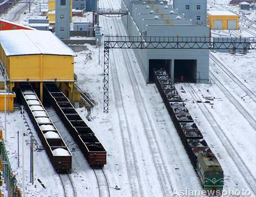 Trains transport power coal out of a coal mine in Huaibei, Anhui Province, February 2, 2008. The State Administration of Work Safety said Monday that 80 percent of state-owned coal mines operate in full capacity to ease the snow-led coal shortage. [asianewsphoto]