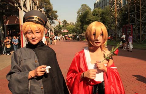 Models stand in front of a booth promoting Sony Corp's PlayStation 4 game consoles at the 16th Ani-Com and Games exhibition in Hong Kong on July 25,2014. The Japanese company will bring its PS4 gadgets to Chinese consumers late this year. [Photo/Agencies] |