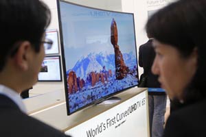 New Samsung Galaxy S5 smartphones are seen on a display at the Mobile World Congress in Barcelona February 23, 2014. Samsung Electronics unveiled a new smart watch and fitness band along with the latest version of its flagship Galaxy smartphone on Monday, demonstrating how the battleground for innovation is shifting from the hand to the wrist.Picture taken on February 23. [Photo/Agencies] |
