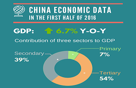The country's GDP grew 6.7 percent year on year in the second quarter, which remained within the government's targeted range of between 6.5 and 7 percent for 2016.