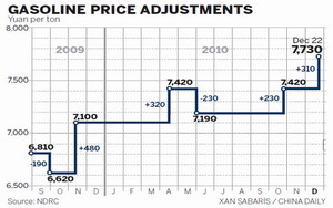 Gasoline and diesel retail prices will rise by around 4 percent on Wednesday, reflecting global market fluctuations, but officials and researchers said the increases will have only a limited effect on inflation.