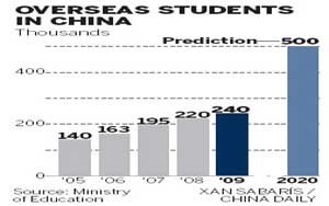 Self-funding foreign students are set to become the largest overseas group in China, as the country plans to attract 500,000 of them in 2020, a senior official of the Ministry of Education (MOE) said on Monday.