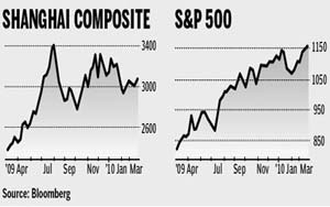 The Standard & Poor's 500 Index has set new highs while China's benchmark stock index failed to surpass its August peak, a divergence that makes US equities more attractive, according to Janney Montgomery Scott LLC.