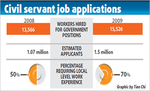 The heated competition for next year's civil servant positions - in which 4,000 people might fight for one job - has not scared away job-seekers as the number of applicants is expected to hit a historical high.