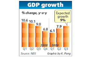 "Achieving a growth rate of 8 percent for the year is basically no problem," said an official with the country's top economic planner, as statistics for September showed improvements in trade, housing sales, manufacturing and car sales.