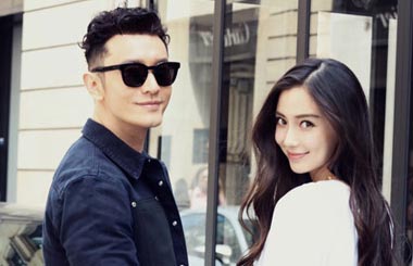 Actor Huang Xiaoming and his wife and actress Angelababy were spotted on the streets of Paris prior to attending a fashion show.