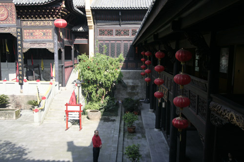 | Huguang Guild in Southwest China's Chongqing Municipality was initially built during the Ming and Qing dynasties as a meeting place for businessmen from central China's Hunan and Hubei provinces and South China's Guangdong and Guangxi Zhuang Autonomous Region. The Emperor Yu's Palace, the largest construction in the guild, covers an area of 2270 square meters, one third of the whole area. The beams and rafters are carved and painted with human figures, plants, historical legends and various animals to express people's wishes. Museum of Plaques in the right wing to the hall of the Emperor's Palace has a collection of plaques, some as old as 500 years. These inscribed boards can be divided into five categories of praising excellence, encouraging business or study, inscription for residence and inscription for congratulations on birthday. A 70-year-old woman surnamed Pan tells that every plague has a story. [chinadaily.com.cn/Sun Yuqing] |