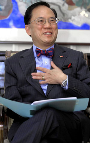 Donald Tsang, chief executive of the Hong Kong Special Administrative Region speaks during an interview with Xinhua news agency. [Xinhua]