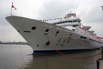 Yuanwang 6, a space tracking ship, is delivered for service in Shanghai April 12, 2008. The ship will help serve the Shenzhou VII spacewalk mission scheduled for autumn. [Xinhua]