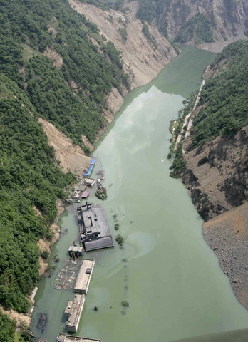 Photo taken on May 22, 2008 shows an aerial view of quake lakes formed after the May 12 earthquake in Beichuan County, southwest China's Sichuan Province. [Xinhua]