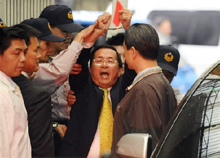 Chen's arrest and suspicion surrounding others in the case has cast a shadow over his Democratic Progressive Party, now the main opposition party after its landslide defeat in legislative and "presidential" elections earlier this year. The party backed him until he left it in August. "The court, after questioning the suspect, believes the suspected crimes to be severe," the district court said. "And there are enough facts to believe there was buried evidence, fabrication, altered evidence and conspiracy among suspects or witnesses," it said in a statement. Chen has cast himself as a victim in the case, saying the aggressive investigation is the result of behind-the-scenes pressure from the ruling Nationalist Party (KMT). The list of suspected crimes merge two cases, one involving misuse of a confidential special affairs fund and the other related to money laundering, a prosecutor's spokesman said. Family members and former aides are also being probed. The Chen's is suspected of sending at least T$1 billion ($30.4 million) to Japan, the United States, the Cayman Islands, Singapore and Switzerland, among other places, local media have reported. The prosecutor's spokesman declined to confirm the amount. Photos of Chen filled the front pages of newspapers on Wednesday, his hands raised in the air to show handcuffs as he left the prosecutor's office the day before. Chen and his lawyer Cheng Wen-lung said this was "political persecution" and a "political plot" to get him. But some analysts disagreed. "They must have hard evidence, and it will hurt the DPP's image for sure," said George Tsai, a political science professor at Chinese Culture University in Taipei. "I don't know if it will cause social unrest or not," Tsai said. "We might see minor demonstrations." And in Beijing, a mainland official on Wednesday refuted Taiwan former leader Chen Shui-bian's claims of being persecuted by the Kuomintang and the Communist Party of China as "a sheer fabrication". "I believe everyone could see the purpose of his clumsy trick," State Council Taiwan Affairs Office spokeswoman Fan Liqing said at a press briefing. |