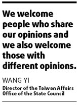 Updated: 2008-12-22 07:42 SHANGHAI: The next cross-Straits Economic, Trade and Cultural Forum could see more people from different political spectrums, Wu Poh-hsiung, chairman of Kuomintang (KMT) party in Taiwan said yesterday. The participants could be from the Democratic Progressive Party (DPP), the biggest opposition party in Taiwan, too, he said. "In fact, at this forum, only a minority of the 400-strong group from Taiwan are KMT party members. Though this forum was originally created as a communication platform between the KMT and the Communist Party, we welcome voices from different fields," Wu told the mainland media at the end of the fourth cross-Straits Economic, Trade and Cultural Forum. The first forum was held in Beijing on April 14, 2006, to boost cross-Straits ties after former KMT chairman Lien Chan paid a historical visit to the mainland in 2005. "It's true and normal that some people in Taiwan have a different opinion about this forum and about KMT's policy toward the mainland. But I believe that given the results of the forum they will change their mind," Wu said. Wang Yi, director of the Taiwan Affairs Office of the State Council, corroborated Wu, saying: "We sincerely welcome representatives from all political parties and people from all walks of life on both sides to the meeting. Officials of major departments on both sides could attend as experts."