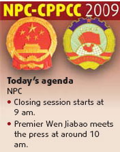NPC agenda for March 13(China Daily)