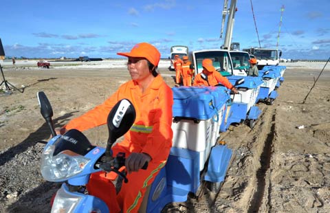 Chen Zhenlian, a deputy of the National People's Congress and vice-chairman of Chinese Calligraphers Association, shows his Chinese calligraphy work of "blue sky and fresh air" to call for environmental protection. Chen urges the necessity to draft a law on protection of people's environment rights.