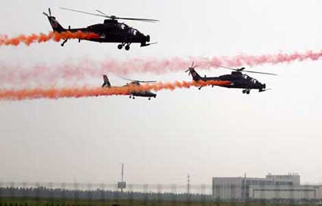 Journalists from all over the world were given a rare performance by China's attack helicopters on Tuesday.