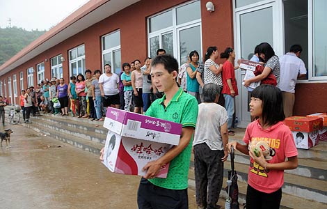 In a Beijing district battered by Saturday's downpour, soldiers with mud on their pants and shovels on their shoulders arrived at a primary school in Beicheying village on Wednesday.