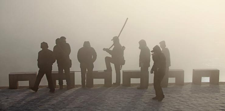 Contestants take part in an Undie Run at Beijing’s Olympic Forest Park, Feb 23, 2014. Thick smog has shrouded the capital for days and the city raised its four-tier alert system to "orange".