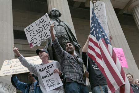 Several hundred protesters yelled their enthusiastic support outside the New York Stock Exchange on Thursday as union leaders decried a proposed $700 billion plan aimed at reinvigorating the credit markets by relieving financial institutions of distressed debt.[Agencies]