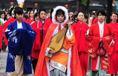Han Ethnic Costume Culture Week began Saturday at Xitang ancient town in Jiashan county, Zhejiang province, attracting many visitors.