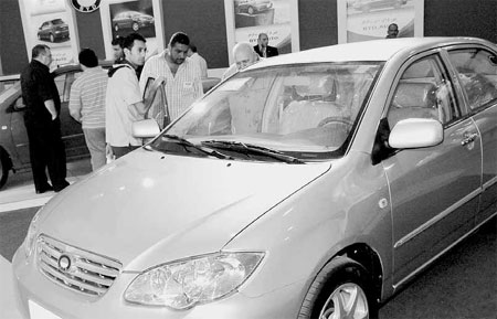 A BYD sedan at an auto show in Cairo, Egypt. This year, the company expects to deliver 8,000 to 10,000 vehicles in Egypt. Lin Yiguang / Xinhua |
