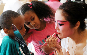 The New York Chinese Opera Society performed selected scenes from Peking Opera for American students in an effort to spread traditional Chinese art and culture.