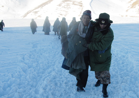| 10月30日,官兵在牧場(chǎng)里搜救到受困的牧民。截至當(dāng)日上午,山南地區(qū)5個(gè)縣的雪災(zāi)已造成6人死亡、1700多名群眾和17.45萬(wàn)多頭牲畜被困。 自10月26日開(kāi)始,西藏山南地區(qū)出現(xiàn)罕見(jiàn)的持續(xù)性暴雪天氣。災(zāi)情發(fā)生后,山南軍分區(qū)組織救援官兵,帶上棉被、棉衣和藥品、擔(dān)架等物資進(jìn)入災(zāi)區(qū),對(duì)被困群眾實(shí)施緊急救援。 新華社發(fā)(楊超攝) |