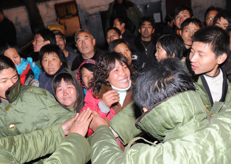 11月18日,被困礦工的家人在看到親人被救出井后十分激動。 當日6時3分開始,河南郟縣礦難被困井下的34人中有32人陸續(xù)安全升井,1人遇難,1人失蹤。 新華社記者 趙鵬 攝
